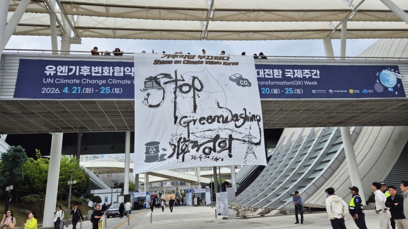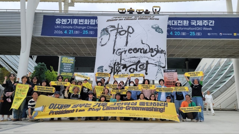 전남 여수에서 진행되는 유엔기후변화협약 기후주간 및 녹색대전환 국제주간을 맞아 환경단체들이 이재명 정부에 그린워싱 중단을 촉구했습니다.