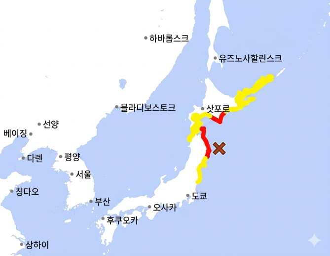 진앙은 아오모리현의 인구 24만 명 도시 하치노헤에서 동남쪽으로 134㎞라고 유럽지중해지진센터(EMSC)이 분석했습니다.