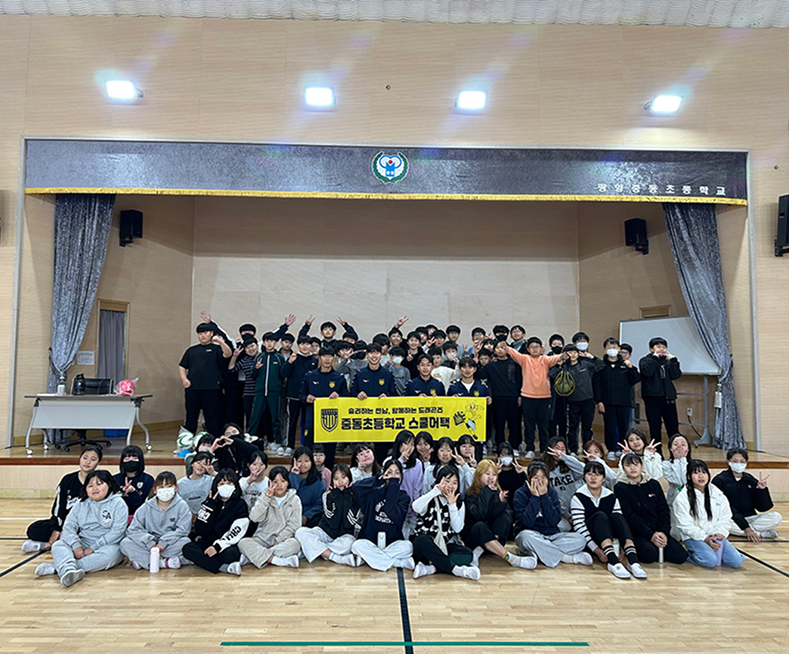 모두 10명의 선수들이 2명씩 짝을 이뤄 각 학교를 방문해 콘 맞추기, 판 뒤집기, 미니볼 옮기기 등 3종 미니게임을 진행하며 즐거운 시간을 보냈습니다.