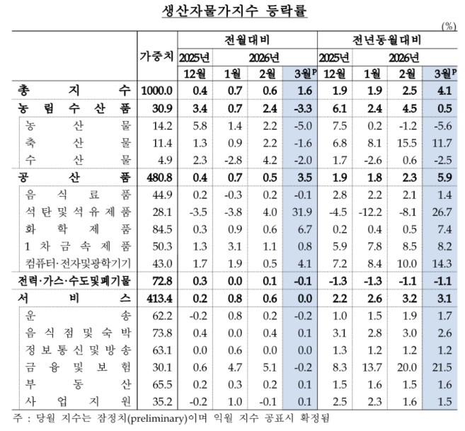이는 3월 유가가 급등했고, 원자재 가격 상승으로 점차 파급될 것으로 예상되면서 생산자물가의 상방 압력으로 작용할 것으로 분석됩니다.