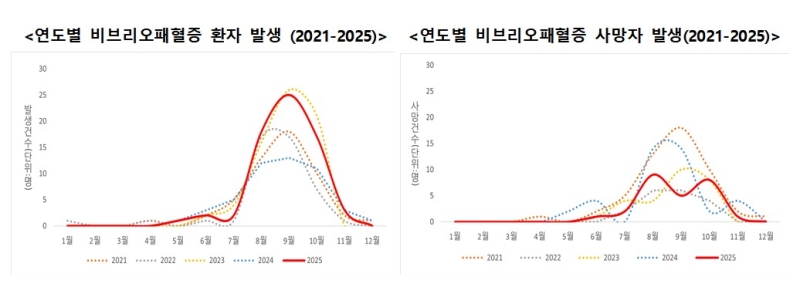 매년 바닷물 온도가 18도 이상으로 올라가는 4∼6월 첫 환자가 나오고 8∼10월에 많이 발생합니다.