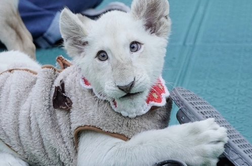 육아에 서툰 어미 사자로부터 출생 후 보호받지 못하는 모습이 관찰되자 사육사 품에서 인공 포육됐습니다.
