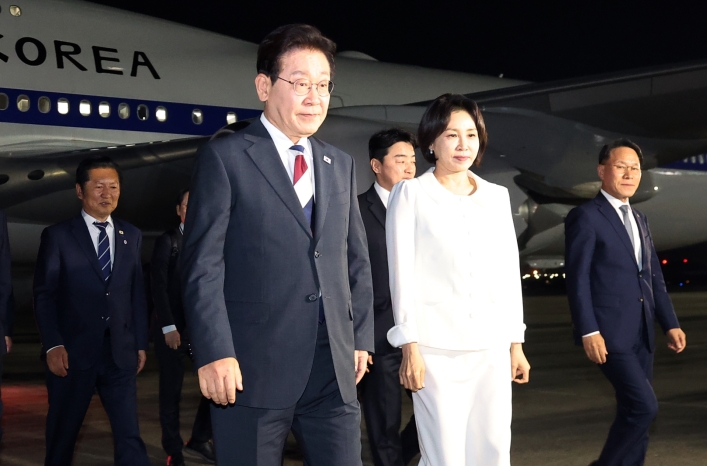 공항에는 김민석 국무총리를 비롯해 윤호중 행정안전부 장관, 김진아 외교부 2차관 등 정부 관계자들과 정청래 더불어민주당 대표, 강훈식 비서실장, 홍익표 정무수석 등이 나와 대통령 부부를 맞이했습니다.