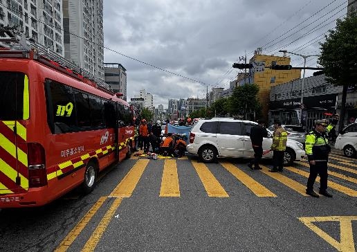 아파트 경비원인 B씨는 당시 학생들의 횡단보도 통행을 안내하던 중 사고를 당한 것으로 파악됐습니다.