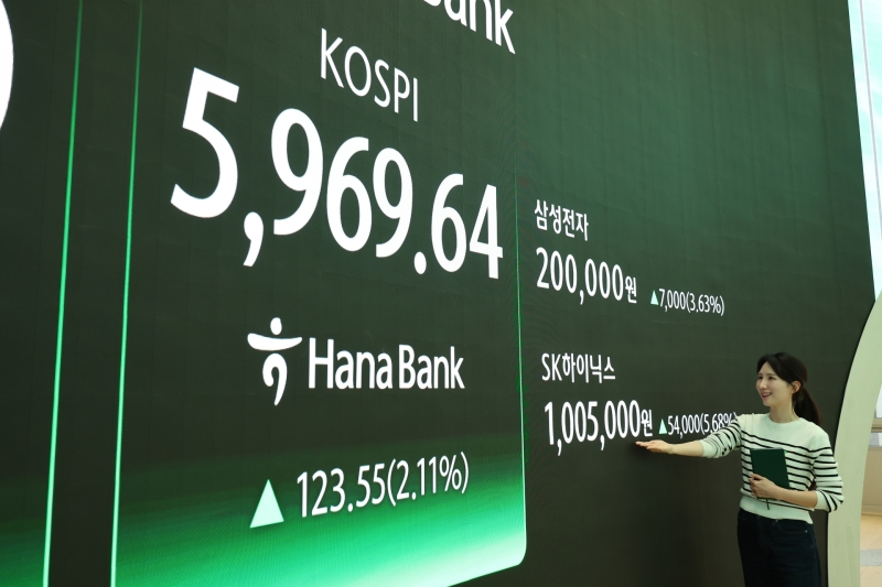 24일 코스피 지수는 전날보다 123.55포인트, 2.11% 오른 5,969.64로 장을 마쳤습니다.