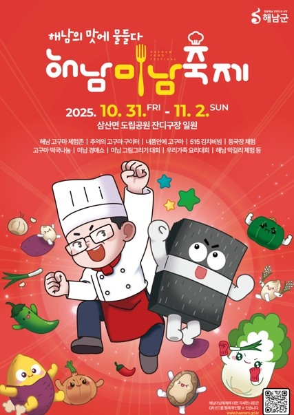 깊어 가는 가을 해남을 맛으로 물들이는 2025 해남미남(味南)축제가 31일부터 11월 2일까지 삼산면 두륜산 도립공원 일원에서 열립니다.
