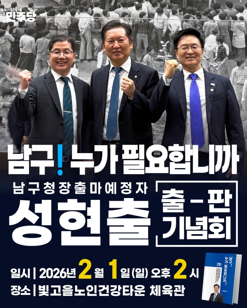 성 수석부회장은 저서 '남구, 누가 필요합니까'를 통해 문화·교육·복지 중심의 정책 비전을 제시했습니다.